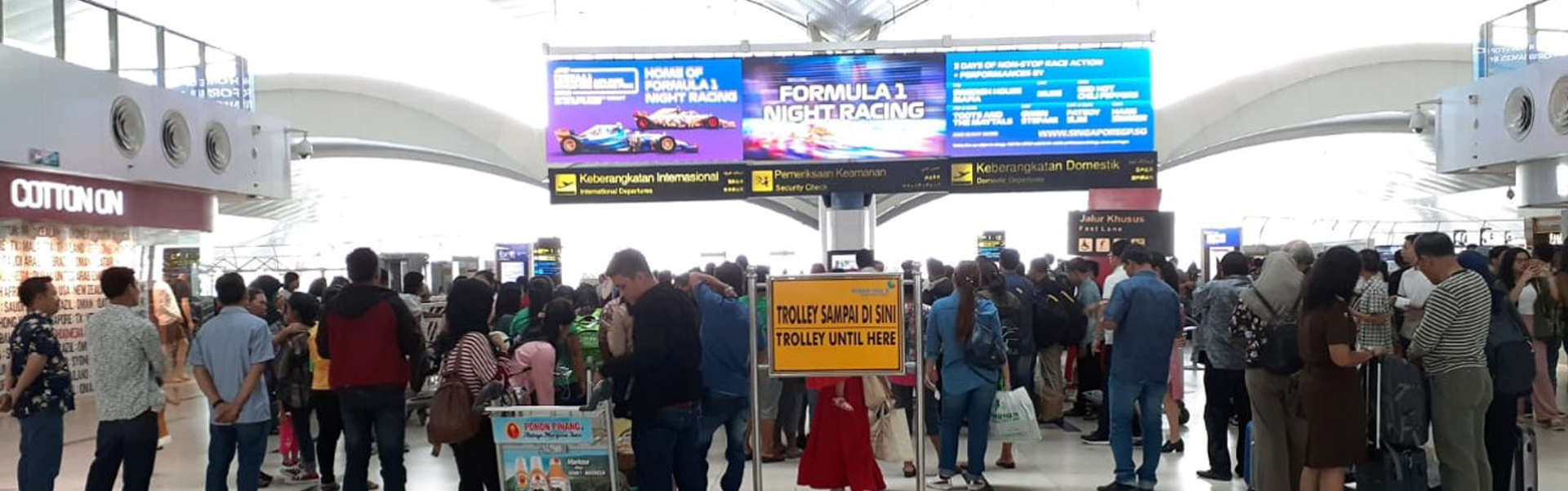Keuntungan memilih pasang iklan dengan Giant LED Screen di security check point keberangkatan Bandara Internasional Kualanamu Medan adalah view menghadap penumpang yang antri pemeriksaan SCP dan pengunjung umum yang berada disekitar shopping area lantai 2. 100% Terlihat oleh para pengunjung Bandara Kualanamu, dikelilingi oleh toko Cotton on, Kidz Station, Coffee shop dan Restoran seperti Ayam Goreng Kalasan, Indomaret dll.